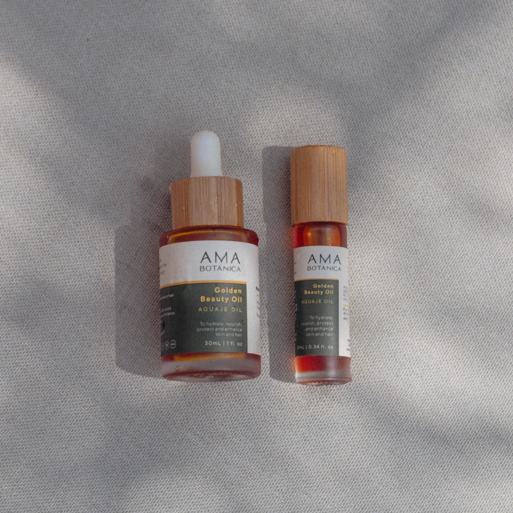 Aguaje oil is packed with 100x more beta-carotene than a carrot for a youthful golden amber hue. Ditch your fake tanner, bronzer and harsh skincare for a vitamin A, C and E enriched punch of color that does it all!